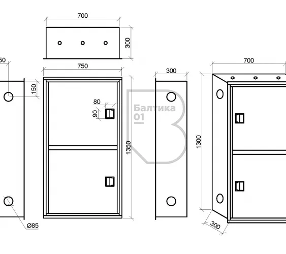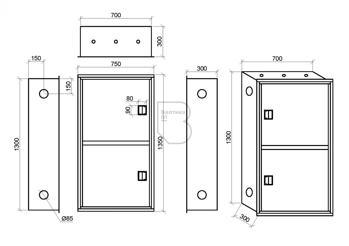 - Габаритные размеры (по рамке), мм1350х750х300